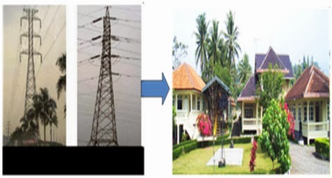 5. Menggunakan saluran transmisi energi listrik dihasilkan/dikirim ke beban. Di sisi beban tegangan listrik diturunkan kembali menggunakan trafo step down (jumlah lilitan sisi primer lebih banyak dari jumlah lilitan sisi sekunder).